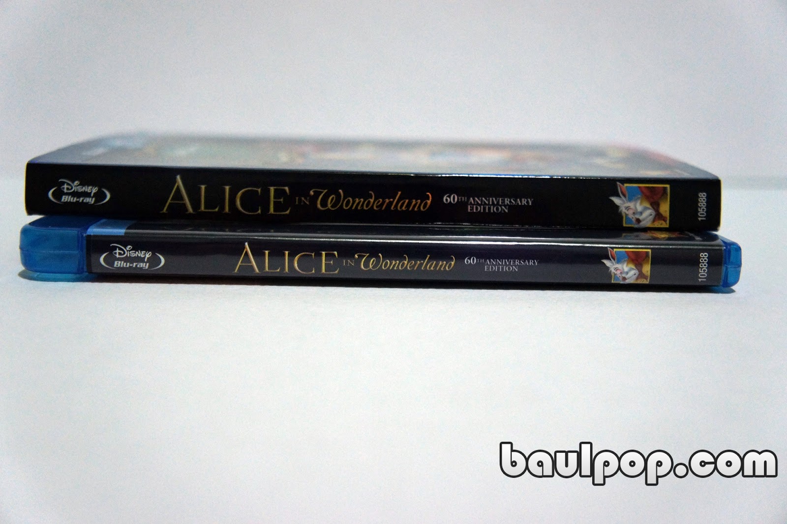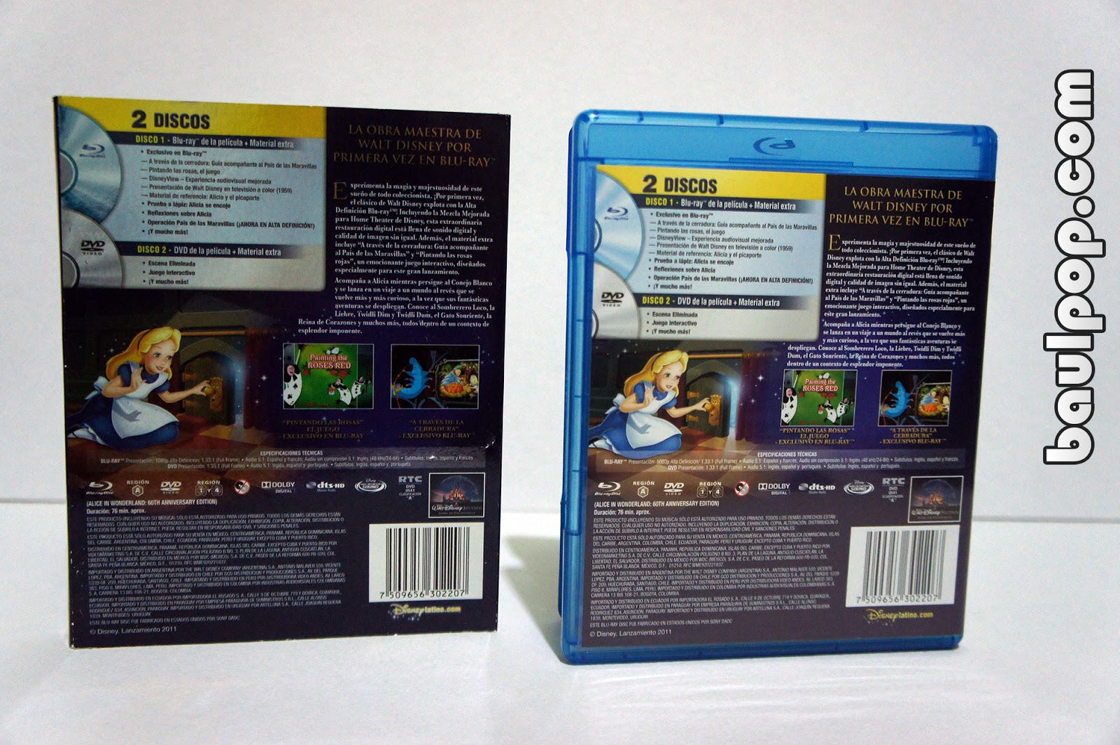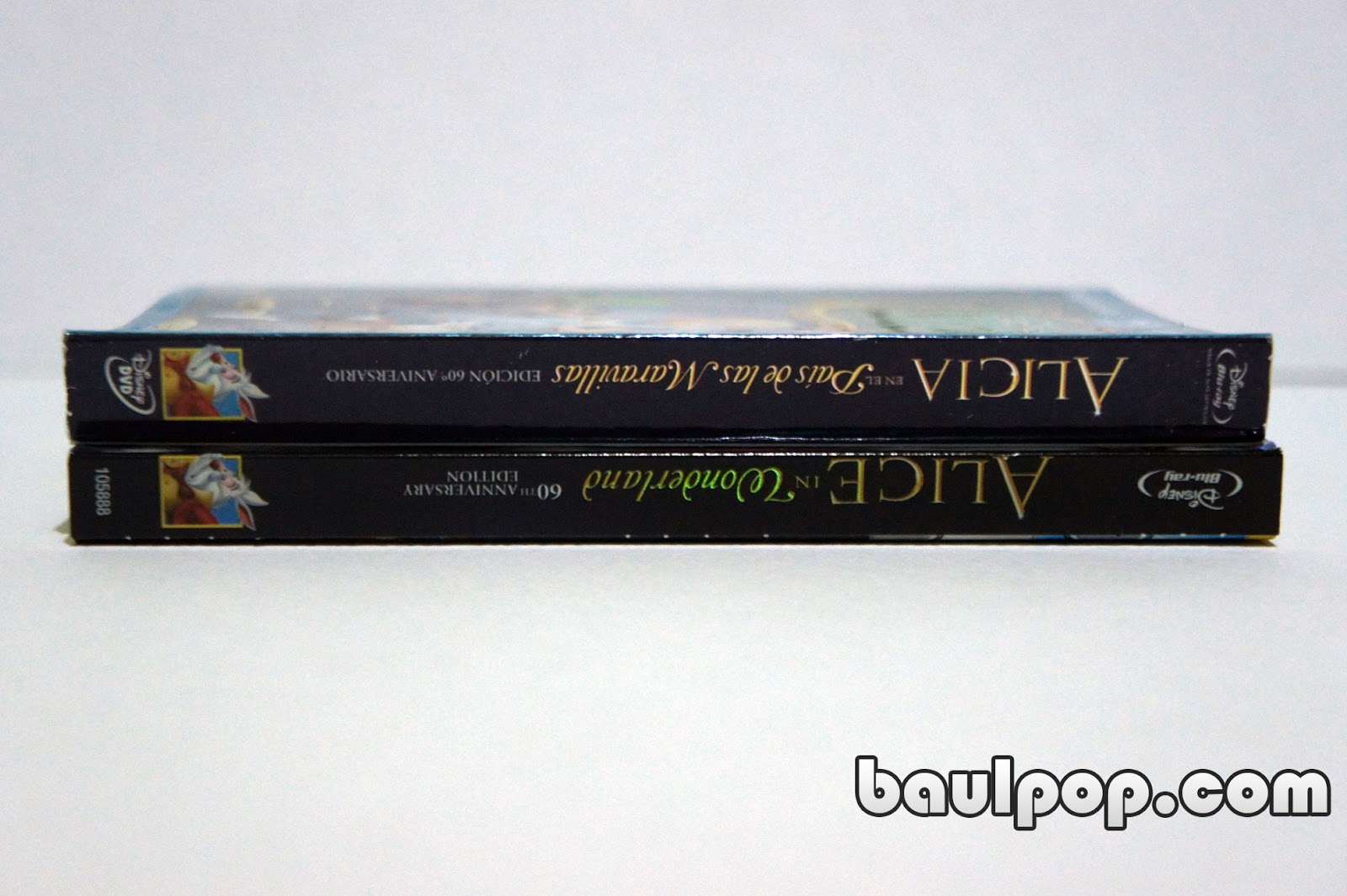 Comparativa de la edición del 60 aniversario de la película Alicia en el país de las maravillas, la comparación es con la edición nacional versus la importada de Estados Unidos.