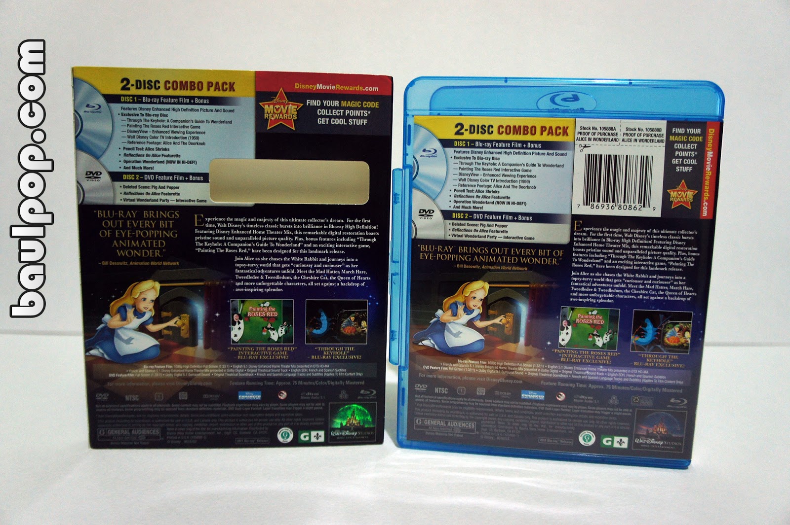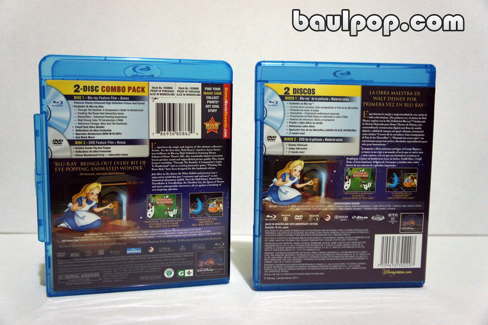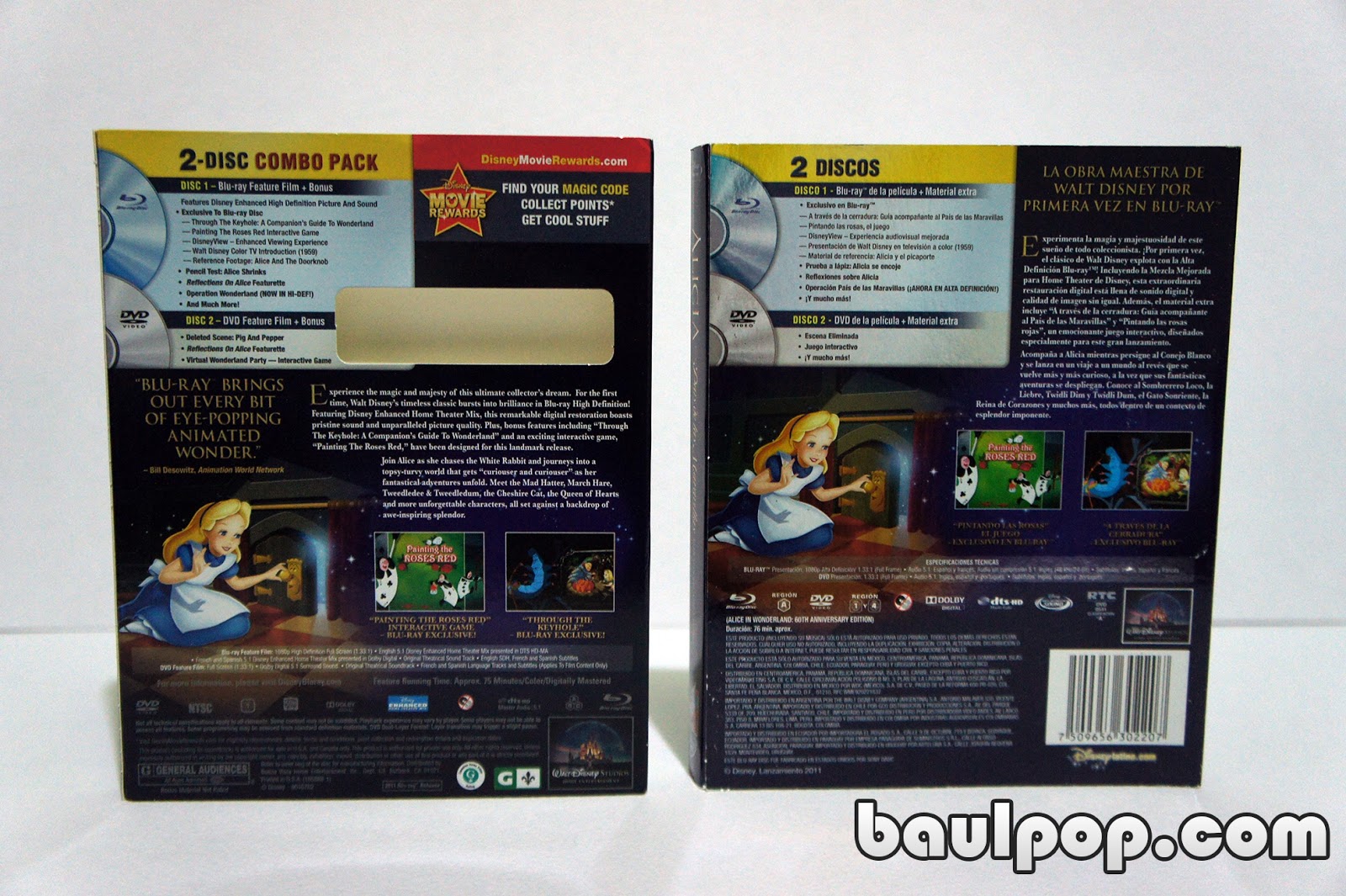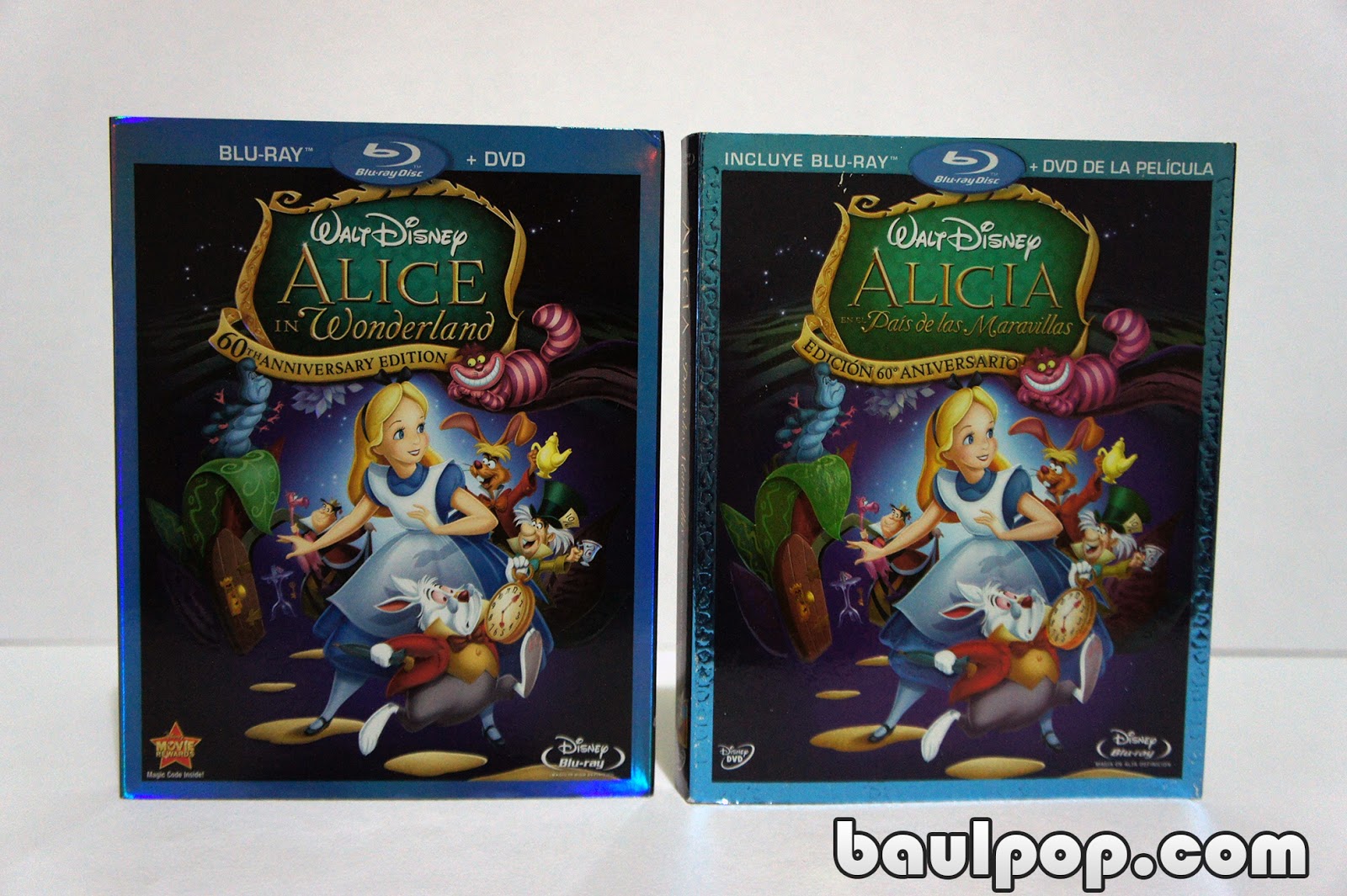 Comparativa de la edición del 60 aniversario de la película Alicia en el país de las maravillas, la comparación es con la edición nacional versus la importada de Estados Unidos.
