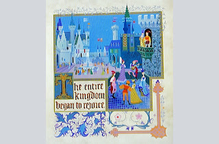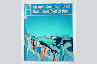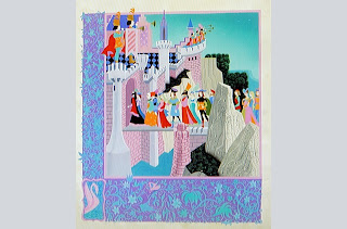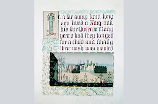 Galería de imágenes del desarrollo visual del libro que aparece al inicio de la película de La Bella Durmiente.