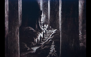 La última escena del Ave María tenía un metraje de 65 metros, la escena más larga en una película de animación hasta ese entonces, para fotografiar esta secuencia se construyó una grúa que fotografío ilustraciones de árboles pintados en hojas de vidrios de 1 a 1,2 metros de ancho. Estas pinturas en vidrio se montaron en bases móviles a medida que la cámara seguía las pinturas del bosque, podían ir retirándolas.