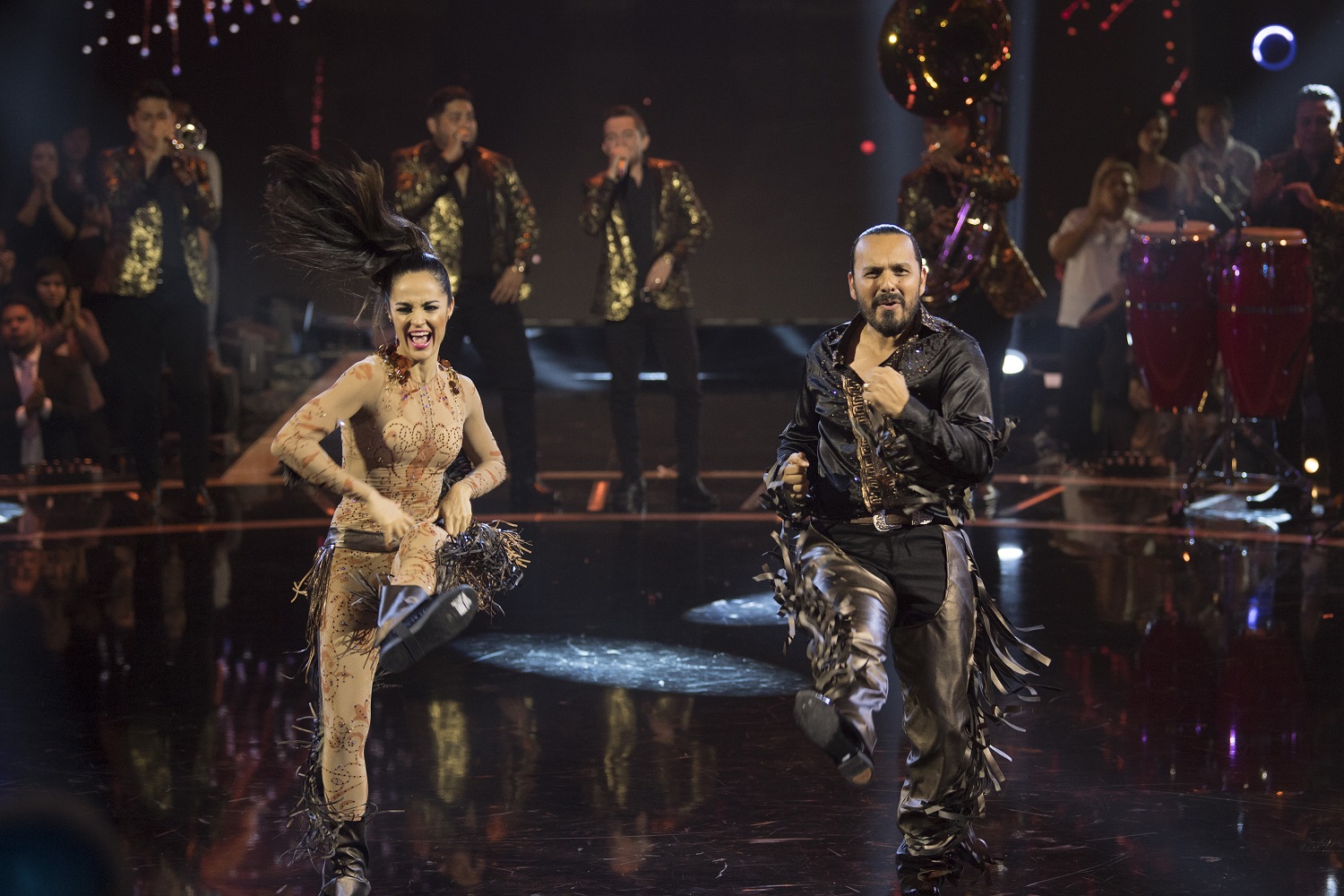 En esta ronda destacó la participación de «La Adictiva Banda San José de Mesillas», agrupación a la que pertenece Carlos Sarabia, y a quien acompañaron dando fondo musical a la rutina de baile que realizo con su con su pareja de baile, Jimena Villegas.