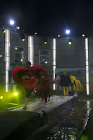 Ya colocados en la estructura, recibieron grandes chorros de agua fría, después un poco de hielo seco y por último jabón. Después, estas tres sustancias se fueron disparando aleatoriamente.