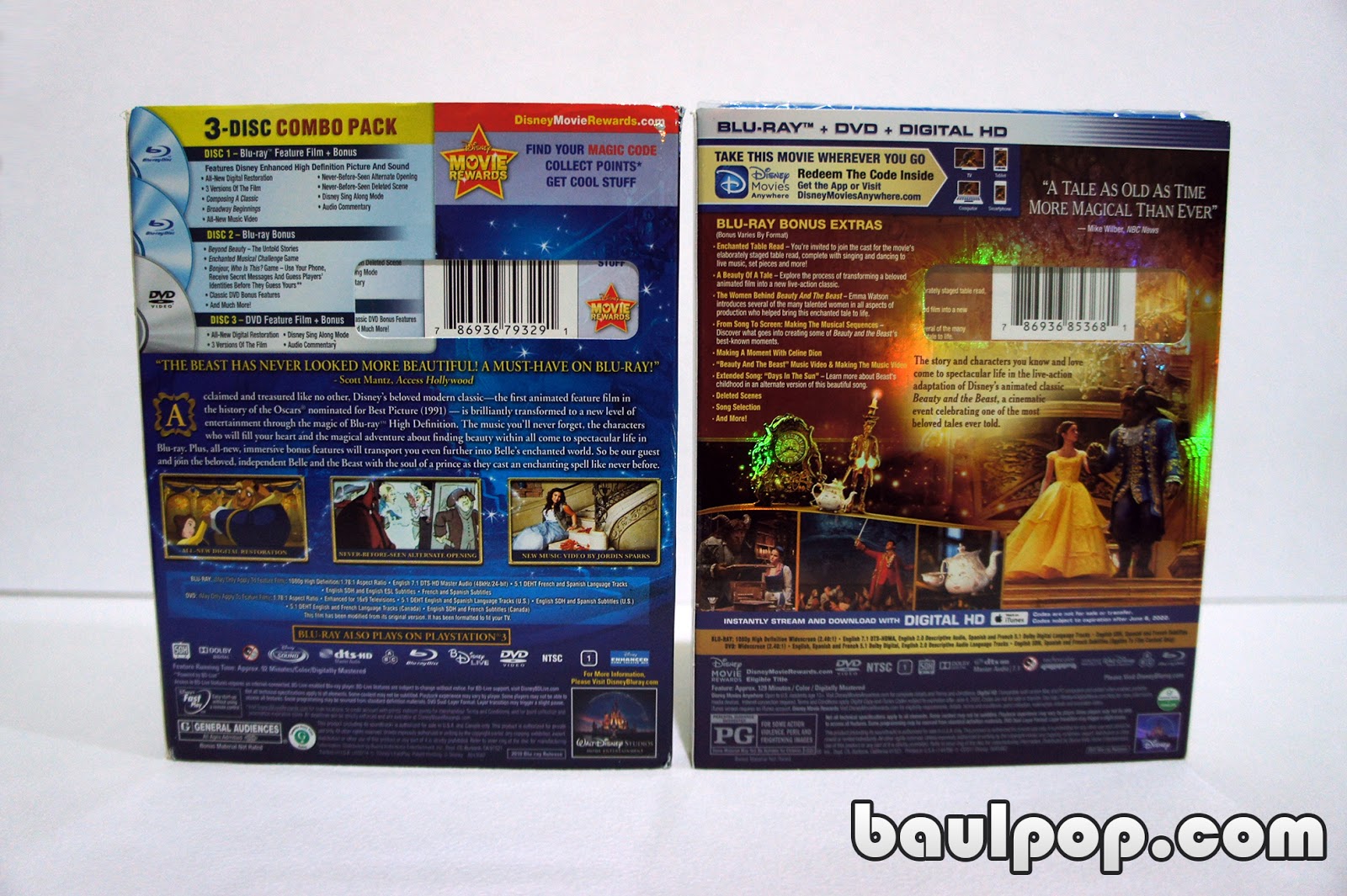 Galería de fotos del blu-ray de la película La Bella y La Bestia en su versión animada (Edición Diamante) y live-action.