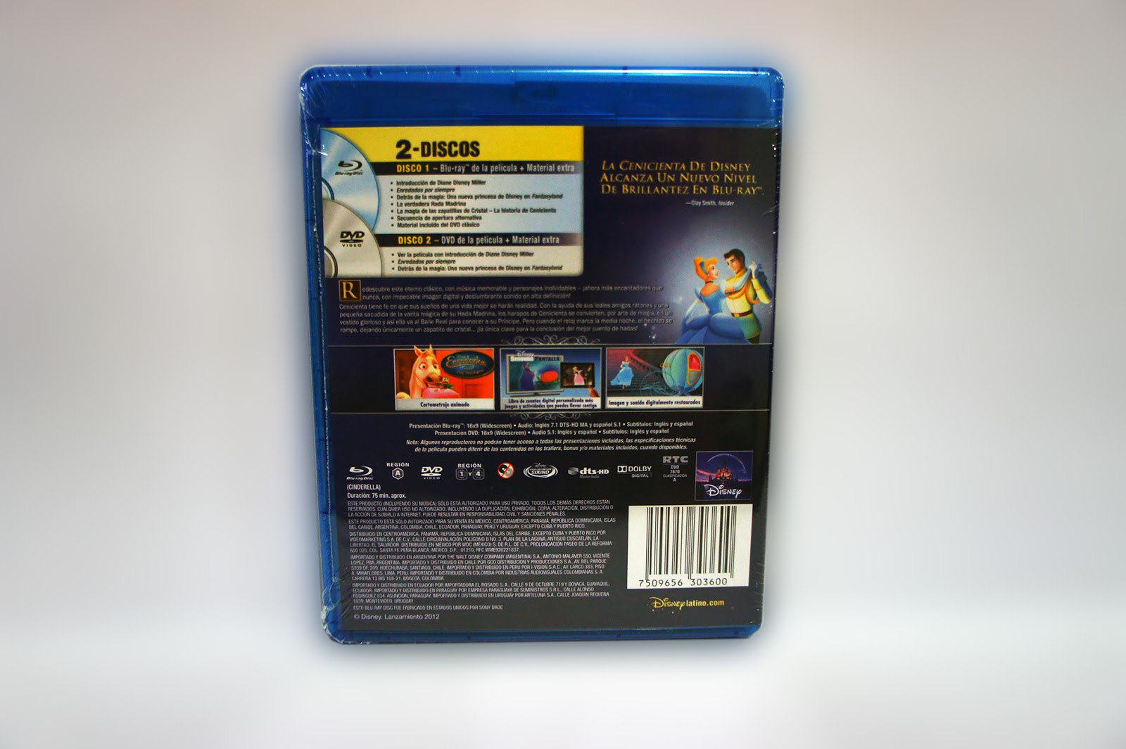 Galería de fotos del blu-ray de la película Cenicienta, presentación combo blu-ray más dvd, Edición Diamante, de una de las mejores películas animadas producidas por Walt Disney. A partir de una historia de Perrault sobre la «cenicienta» que quiere ir al baile del príncipe y no tiene el permiso de la malvada madrastra.