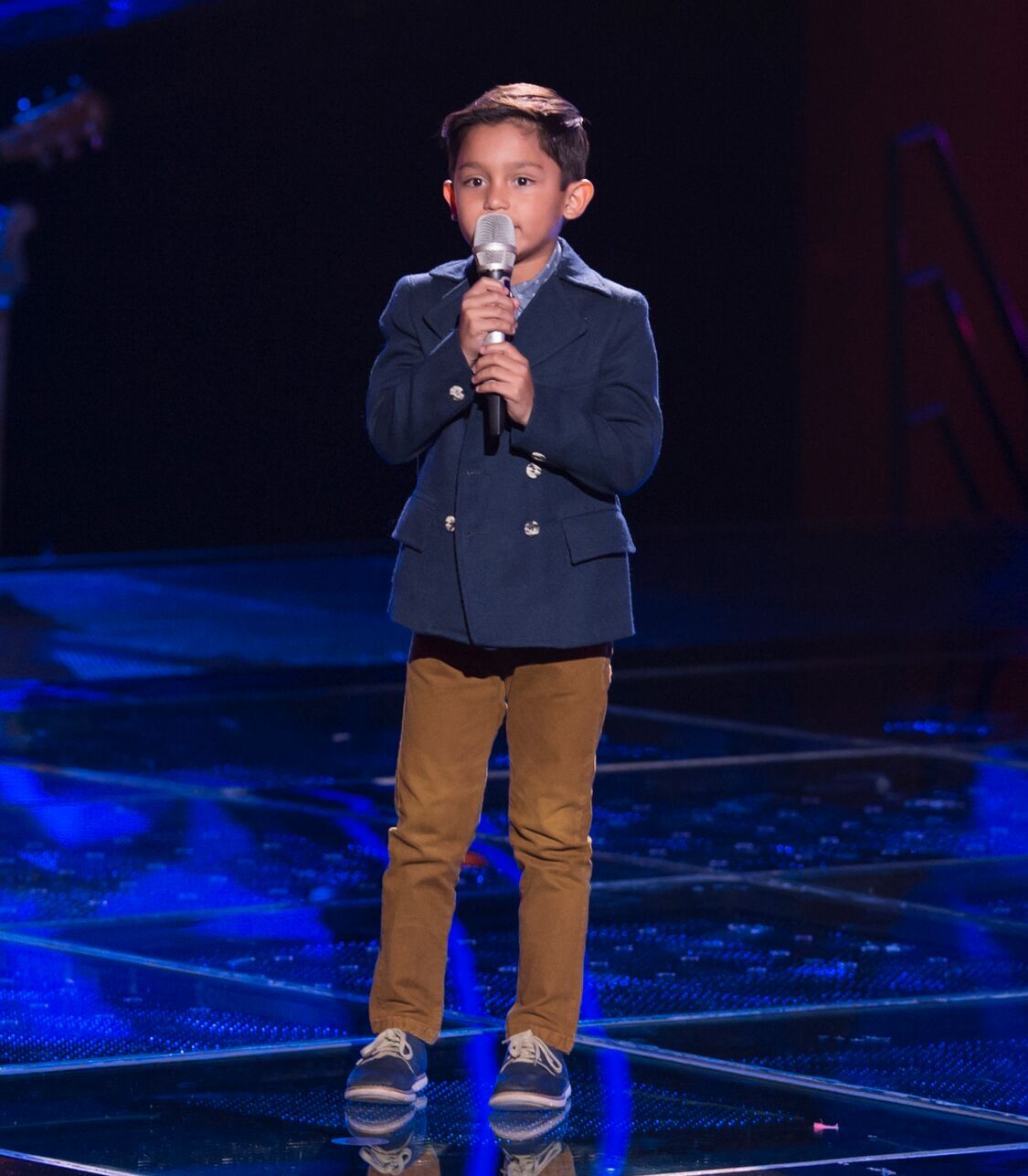 Santiago Ervey abrió esta emisión de La Voz Kids. Este pequeño, originario de Gómez Palacio, Durango, pisó fuerte en el escenario, pues consiguió voltear las sillas de los coaches, quienes luego de conmoverse con la dulzura de su voz, se enternecieron por su tamaño, pues sólo tiene siete años. Santiago ya es parte del equipo de Maluma.