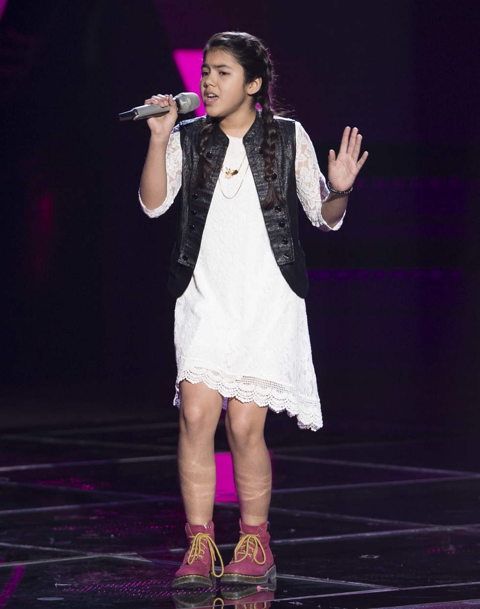 Víveme fue la melodía que eligió Karla Cerón, de 11 años, para demostrar que tiene el nivel para estar dentro de la competencia. Maluma no dudo en voltear por ella y ahora es una digna representante de Poza Rica.