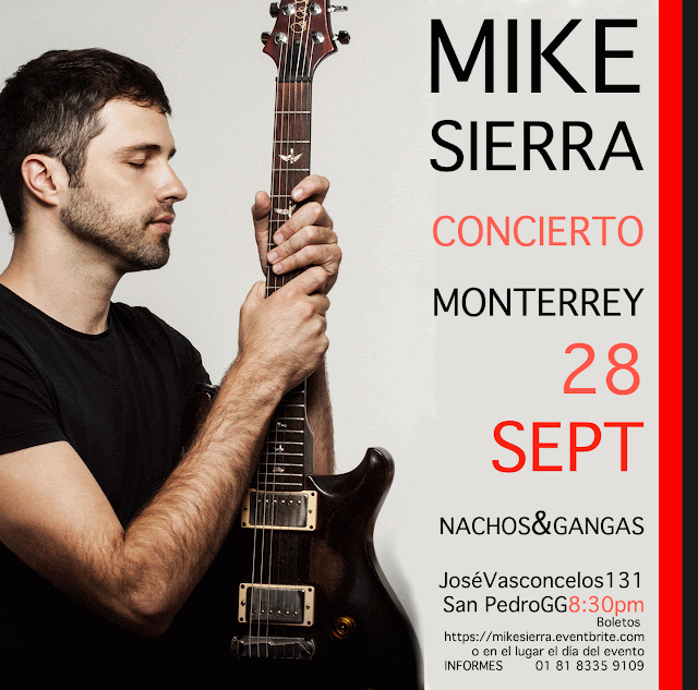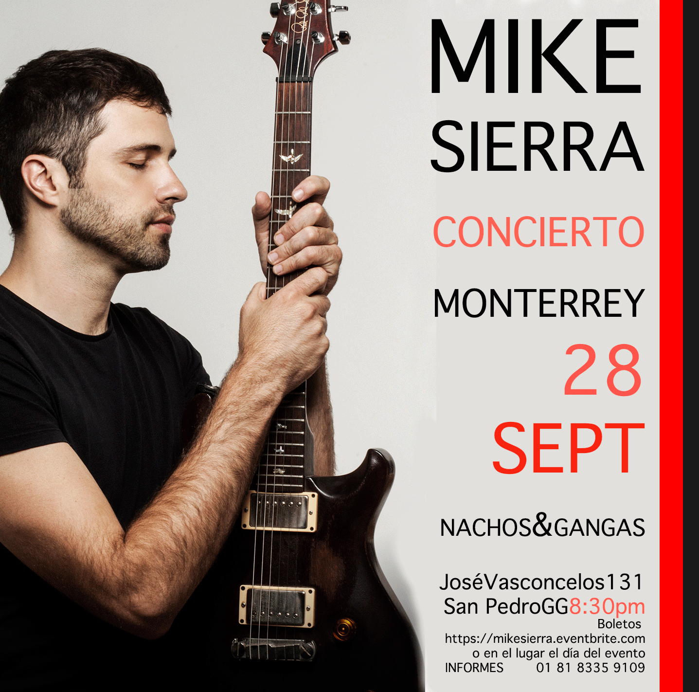 Mike Sierra se presentará el sábado 28 de septiembre en Nacho & Gangas, ubicado en José Vasconcelos 131 en San Pedro Garza y Garza, Monterrey, Nuevo León, a las 20:30 horas.