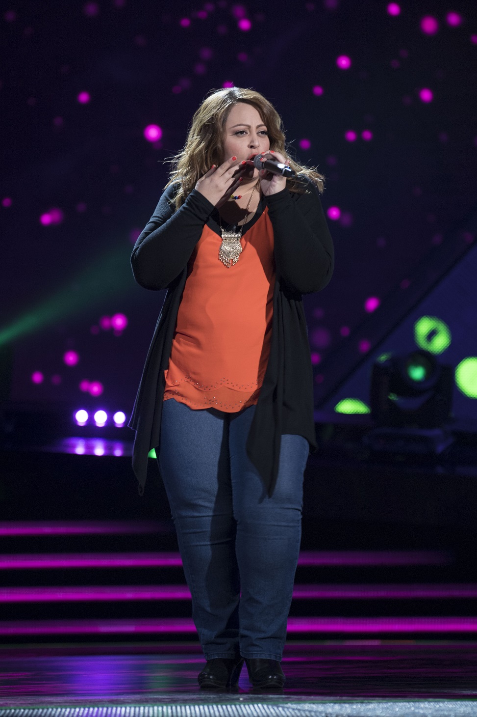 Sarilu Esquivel (18 años, Coahuila) puso su corazón en el escenario con el tema Amor completo, y con su actuación obtuvo un lugar en el equipo de Laura Pausini.