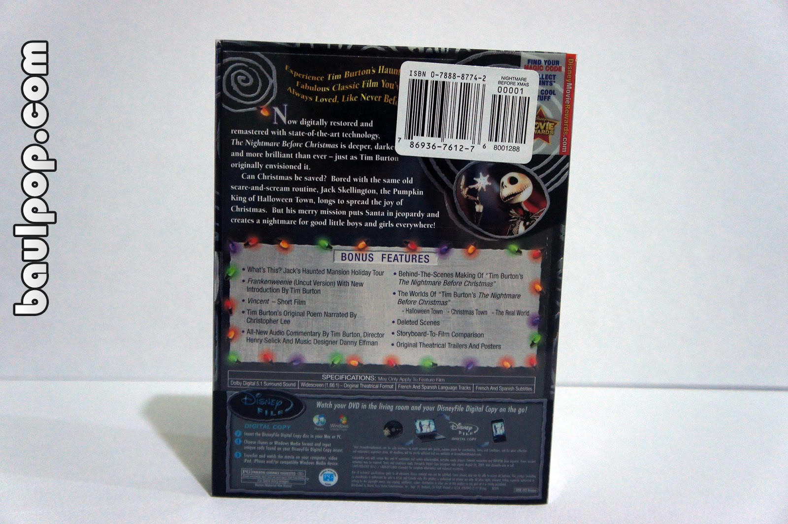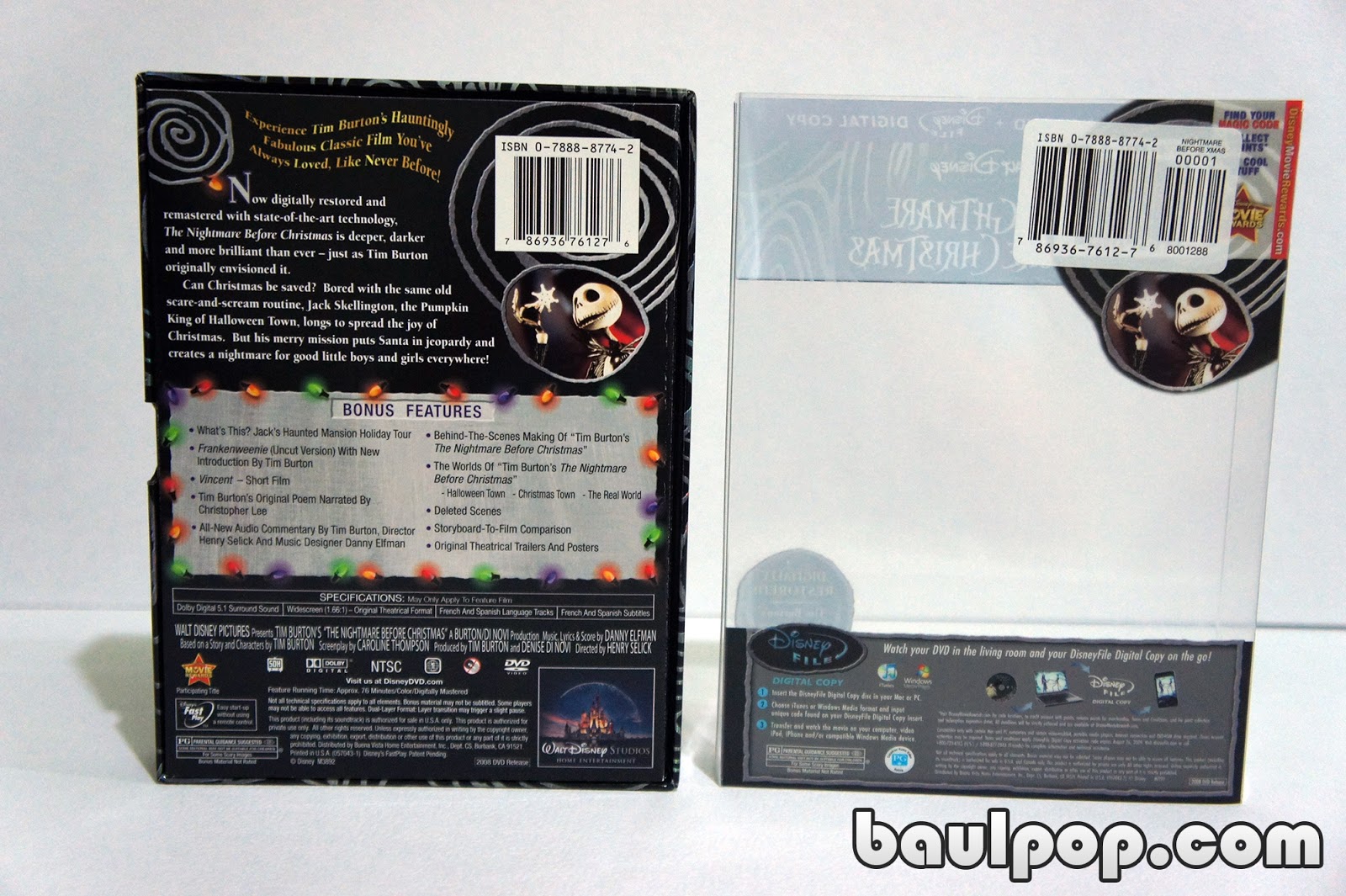 DVD de la película The Nightmare Before Christmas – Collector’s Edition, incluye 2 DVDs y la copia digital para iTunes.