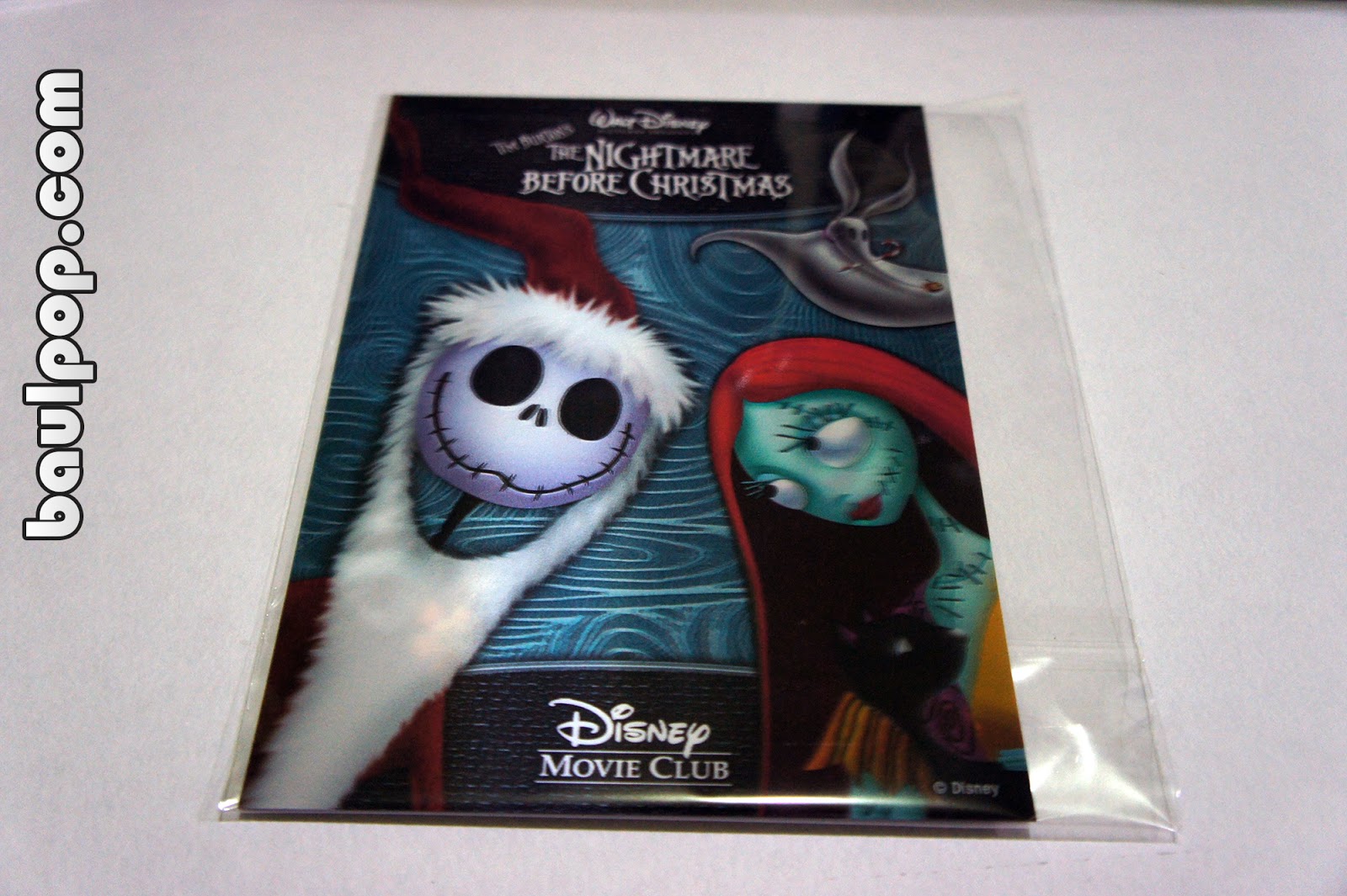 La compré de segunda en eBay y para mi sorpresa me la enviaron junto con la tarjeta lenticular exclusiva de Disney Movie Club. Al moverla aparecen Oogie Boogie, Lock, Barrel, Shock, Mayor, Vampire Teddy y el pato.