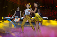 Ray y Ximena, bailarines de “Los Adorables”, pusieron a bailar al público, contagiándolos con su rutina de baile a ritmo de pop con el tema “Happy”.
